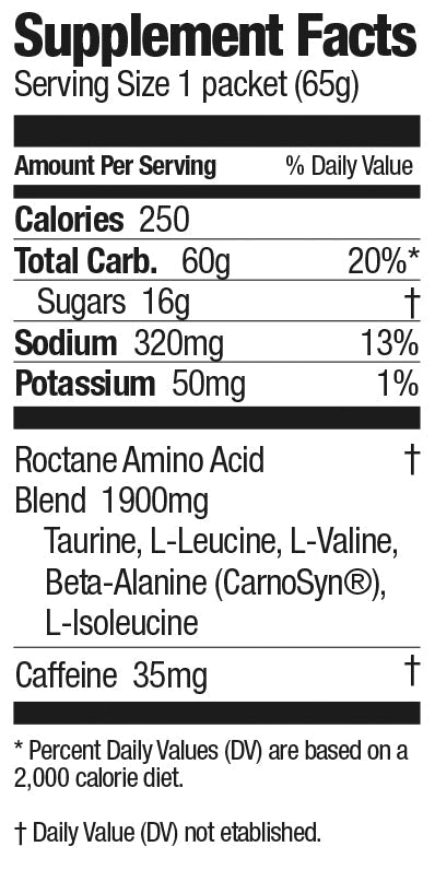 ROCTANE Energy Drink Mixis an all-in-one solution to energy and hydration with key nutrients like electrolytes and branched-chain amino acids to keep you feeling strong and energized. The precise blend of complex and simple carbohydrates will fuel you up, so you feel good, longer. Drink one serving every hour to stay energized and hydrated while exercising.