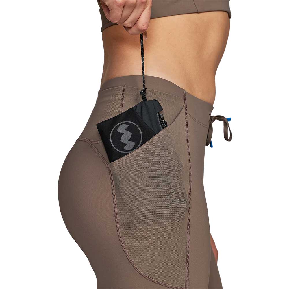 Designed specifically with comfort and storage in mind for high-mileage days, the 7/8 Trail Tight stays secure even when stashing nutrition, hydration, and phone. From a smooth, lightly compressive fabric to lasercut hems, minimal seamlines to maximal pocketing, this legging lets you carry everything you need to keep your run going strong.