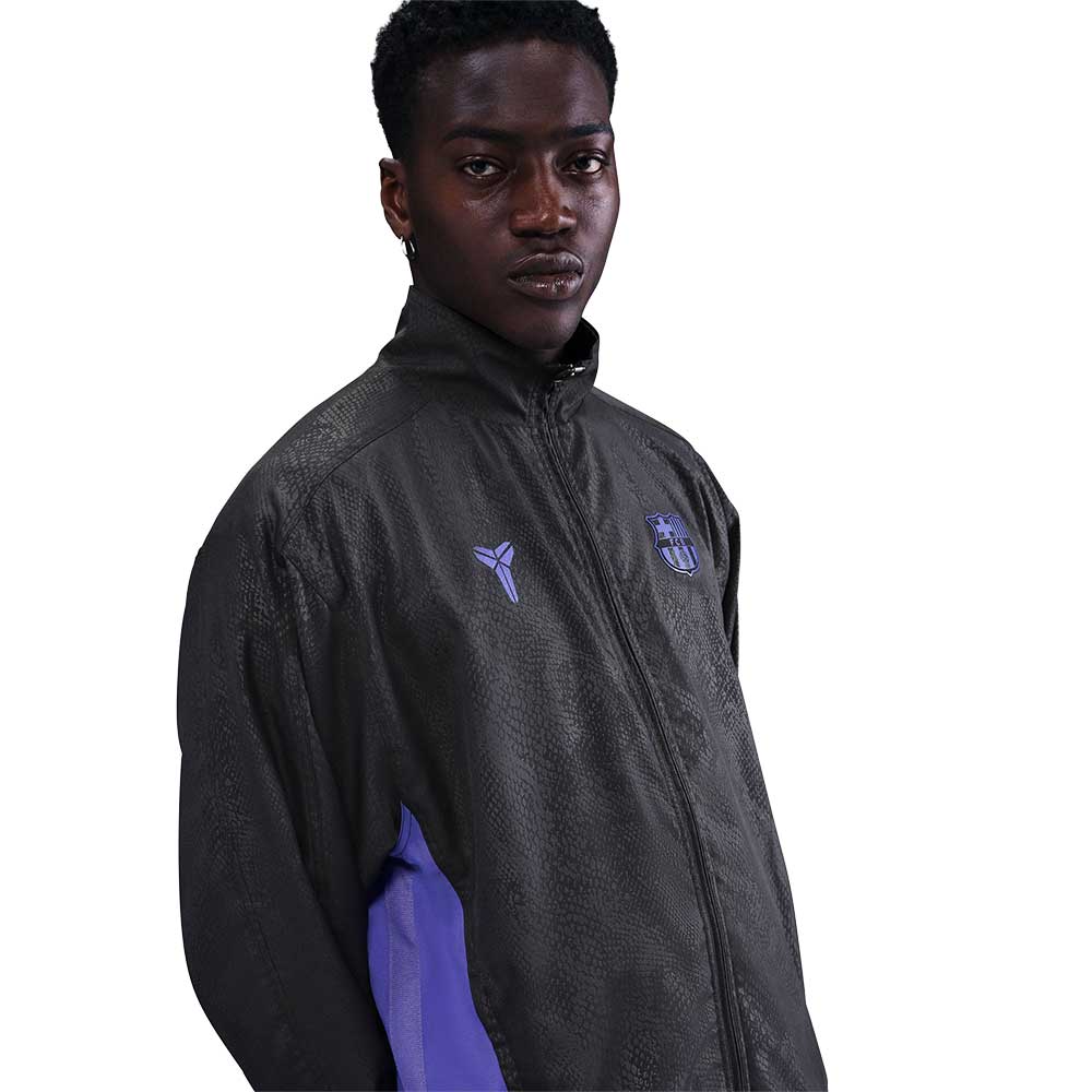 Bring Mamba Mentality to match day. A celebration of Kobe's connection to the club, this relaxed-fit F.C. Barcelona tracksuit jacket honors two icons whose legacies transcend sport.