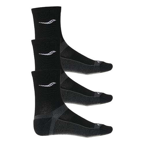 Step into the comfort of the Saucony Inferno Cushion Mid-Crew Socks 3-Pack for a cushioned and secure running experience.