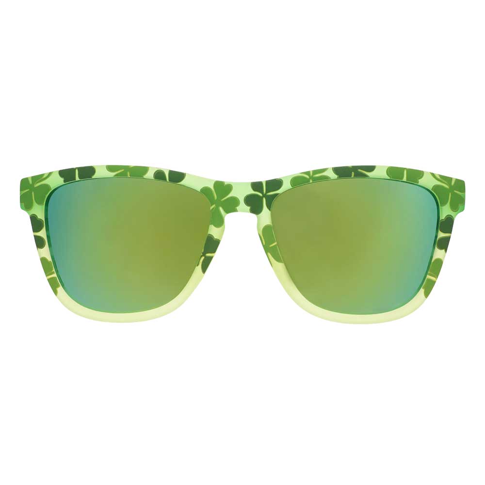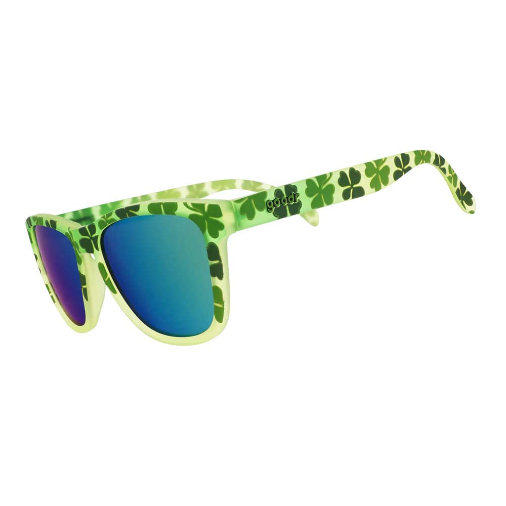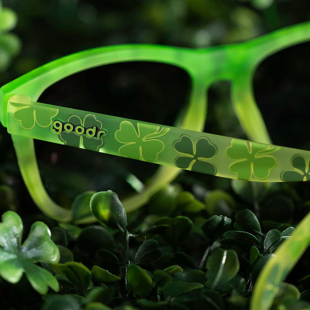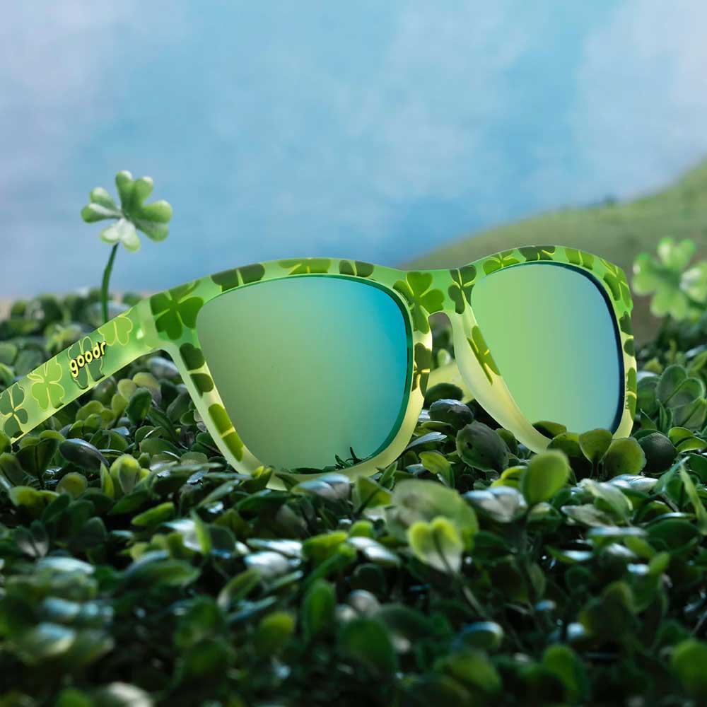 Feelin' lucky?! These limited-edition St. Patrick's Day sunnies are your very own pot o' gold. Leprechaun in Disguise features translucent green & yellow OG frames with four-leaf clovers (so you know they're lucky). With green & gold reflective lenses, you'll be bubblin' in Dublin...in spirit(s).
