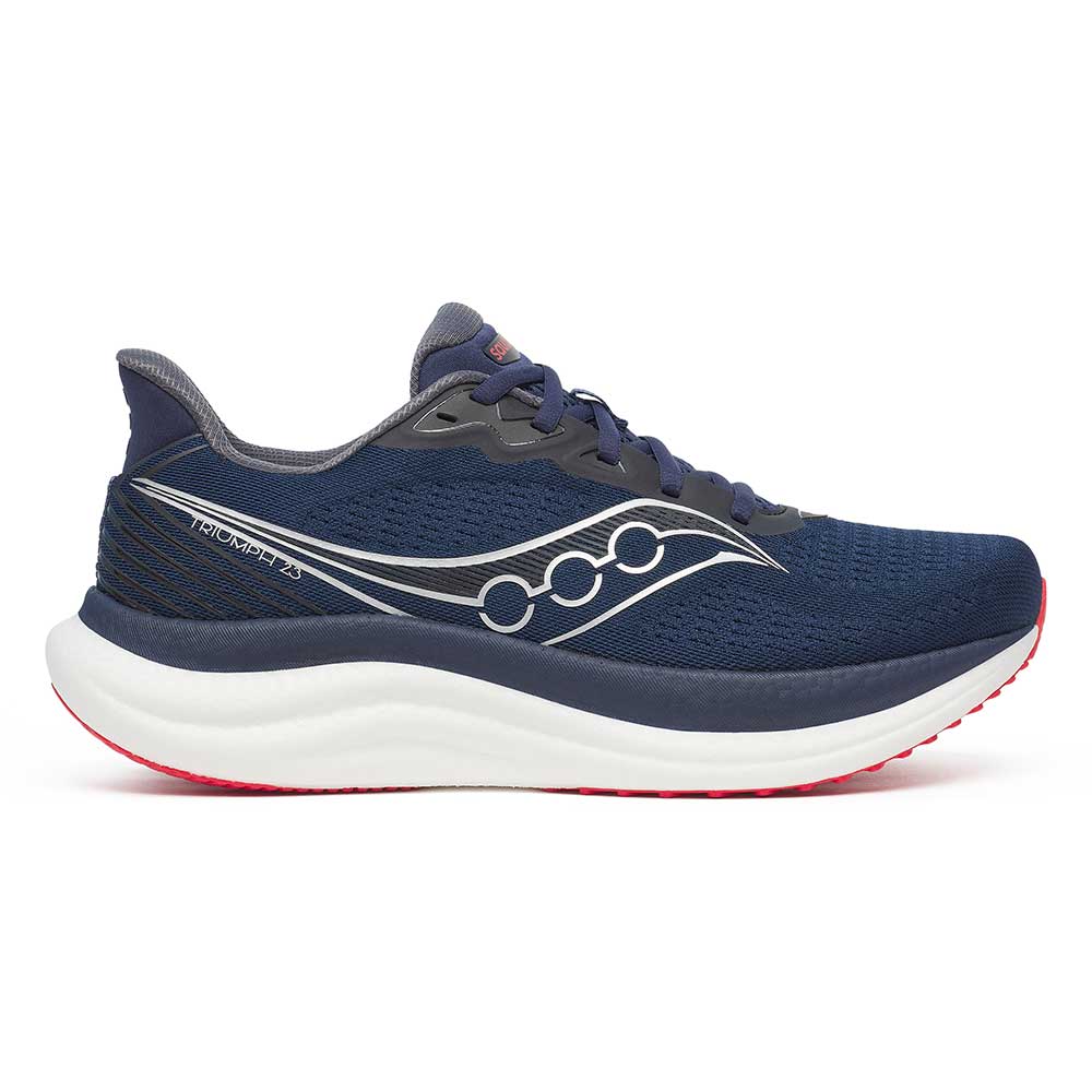 We designed the Triumph 23 for those who want to run longer. The softer, lighter PWRRUN PB midsole—now with more cushioning—delivers a responsive ride that can power you through. It's paired with a premium, super-responsive sockliner (SRS) and an updated outsole, giving you smooth, flexible transitions mile after mile. Whether it’s a slow long run or jumping in a weekend 5K, this shoe will stretch your comfort zone with every step.