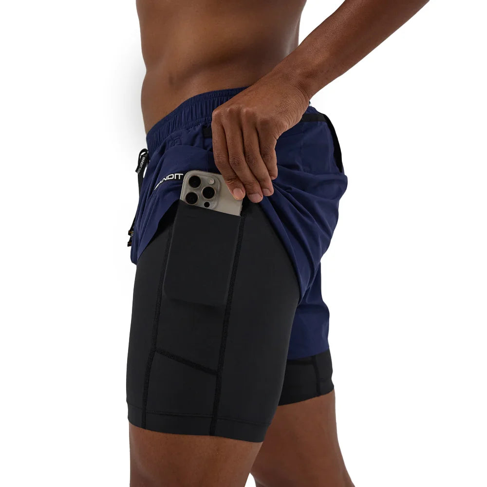 The Men's Vento™ 2-in-1 Short features a silky smooth, anti-chafing, fully perforated fabric with PFC water repellent finish for best-in-class sweat-wicking capability that floats over our SoLite™ compression liner. Complete with 9 total pockets (2 hand, 4 gel, 2 phone, 1 back zipper) for all your storage needs. Finished with bonded seams, subtle reflective branding, and a custom waistband with a branded drawstring.