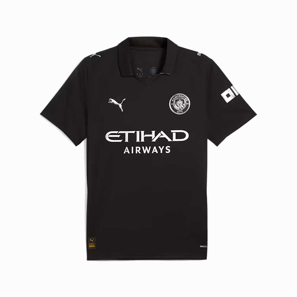The earliest-known kit in Manchester City’s history dates back to 1884, when the football club was based in Gorton. The 25/26 Away Kit is a tribute to the early Cityzens, reimagined with a nod to the club's innovative spirit. The all-black design takes inspiration from that historic kit, combined with metallic details to celebrate the timeless essence of Manchester City Football Club.