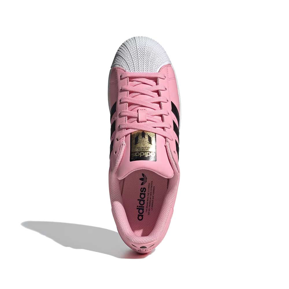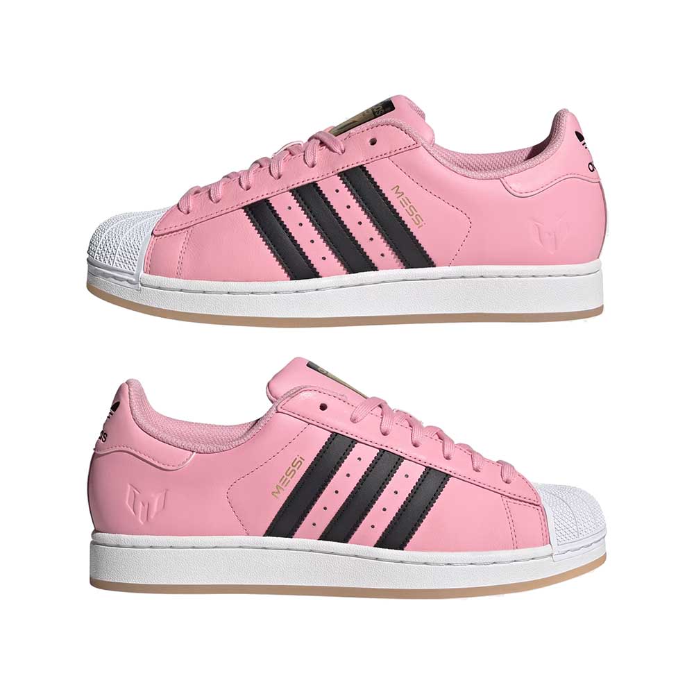 Stand with Lionel Messi in timeless adidas style. One icon celebrating another, these Superstar shoes display the Argentine playmaker's name and logo over his club team's colors. With its comfortable, full leather upper and unmistakable shell toe, this 3-Stripes legend is the perfect platform for you to show your soccer pride.