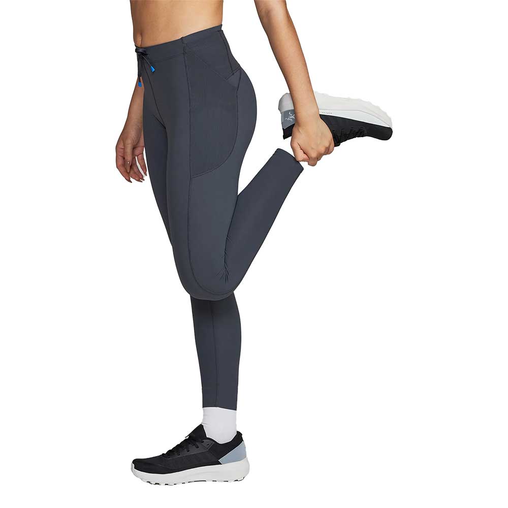 Designed specifically with comfort and storage in mind for high-mileage days, the 7/8 Trail Tight stays secure even when stashing nutrition, hydration, and phone. From a smooth, lightly compressive fabric to lasercut hems, minimal seamlines to maximal pocketing, this legging lets you carry everything you need to keep your run going strong.