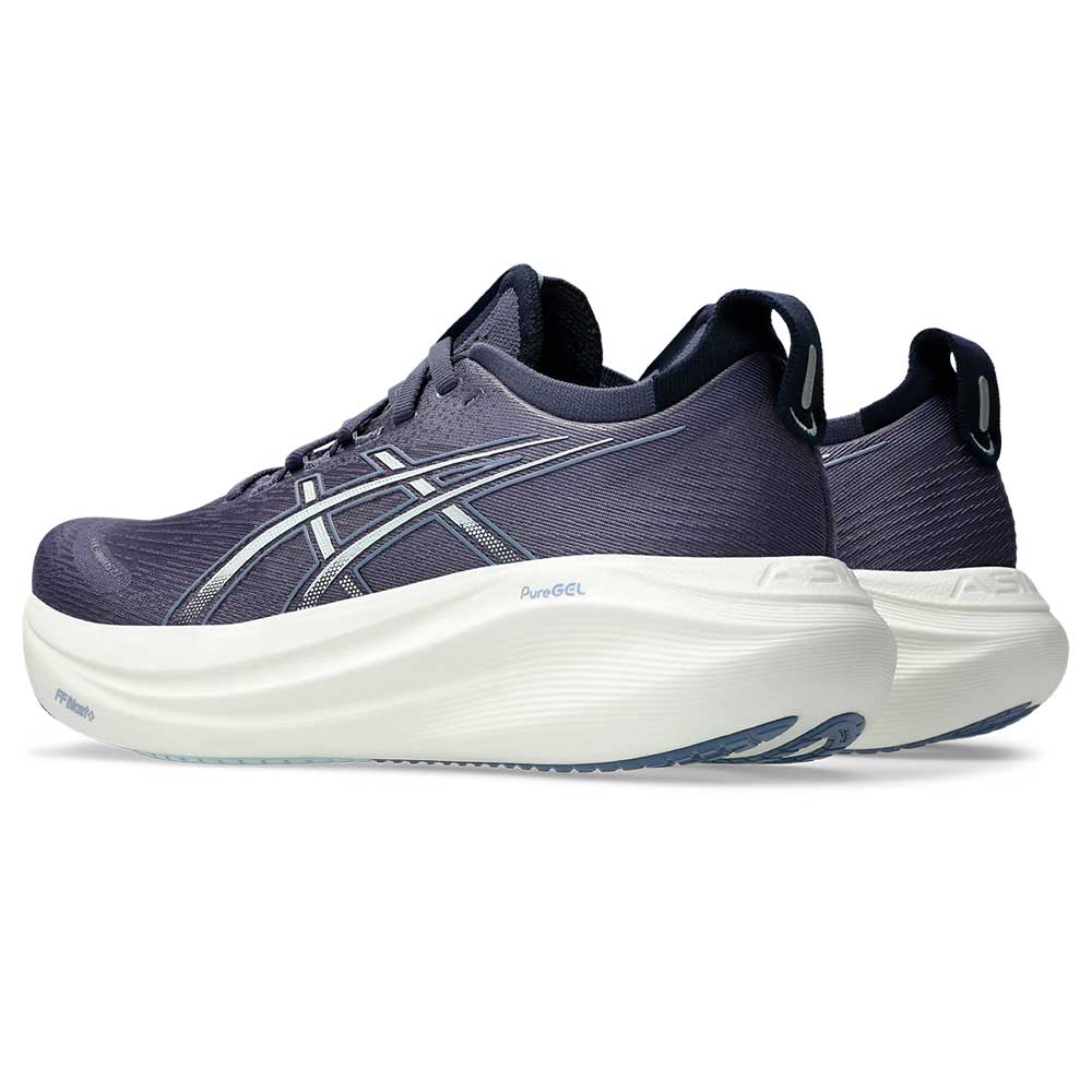 The GEL-NIMBUS® 27 shoe's soft cushioning properties help you feel like you're landing on clouds. This design is revamped to help create a softer and smoother running experience.