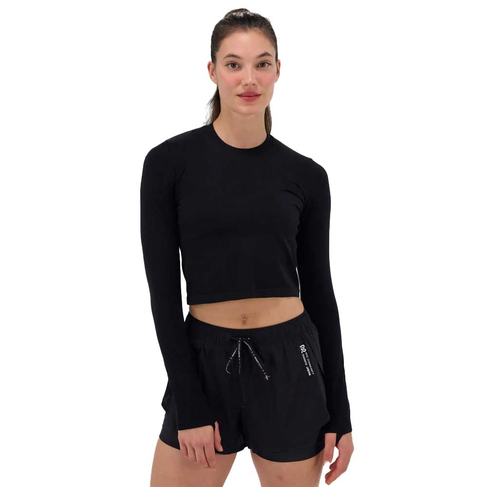 The Mercury Seamless™ Long Sleeve Crop is designed to be the perfect Fall running layer. A seamless construction using soft, sweat-wicking, and anti-microbial performance yarns, it features a cropped fit, rib crew neckline, novelty textural blocking, subtly knitted-in branding, and a v-shaped notch detail at the center-back neckline.