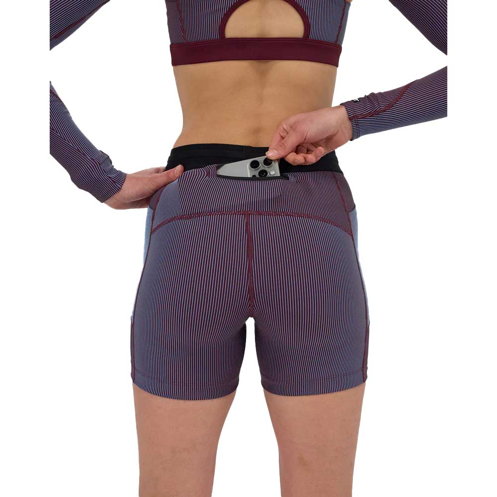 Crafted in our ultra comfortable Striped Cadence™ performance fabric, the 5" compression bottoms have no front rise seam and are complete with 2 waterproof phone pockets on the sides and 1 zipper stash pocket at the center-back. Finished with Italian grip tape at the hem to prevent ride-up, our custom anti-chafing waistband, and subtle silicone logo detailing.