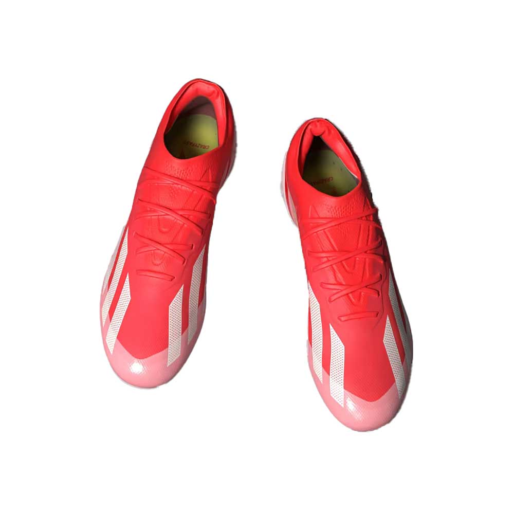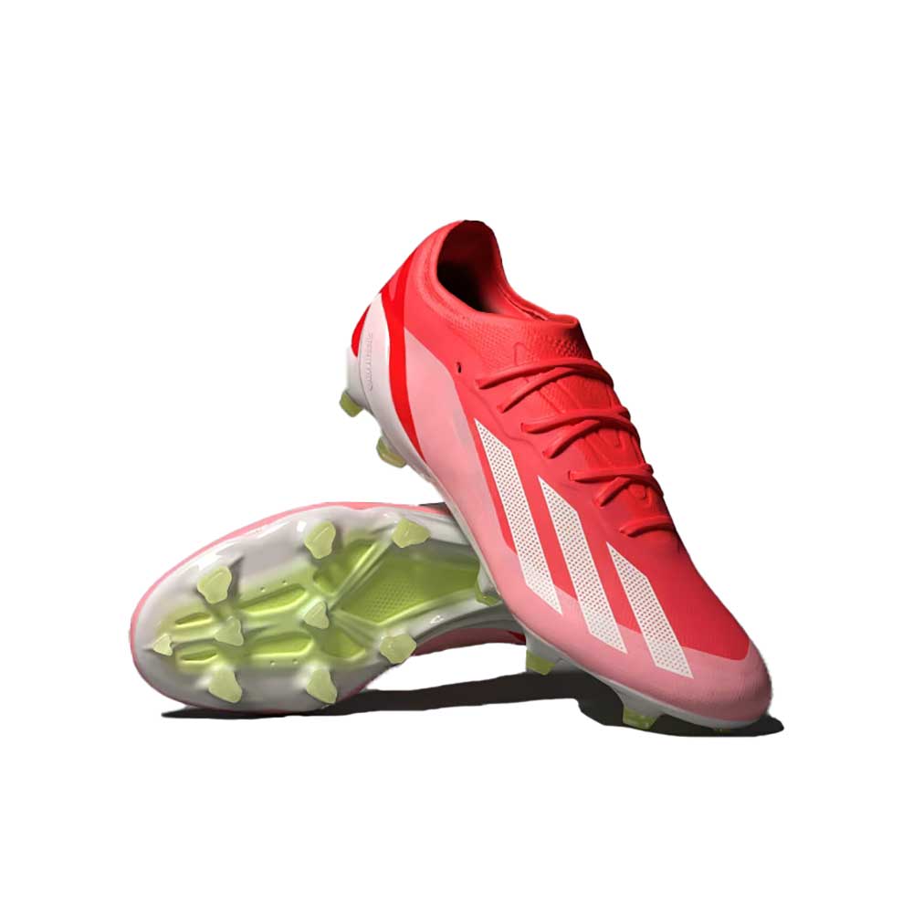 Feel the world down as you move faster. The X Crazyfast Elite Firm Ground Boots are made for acceleration on natural ground, offering maximum support to help you reach lightning speeds. Watch the game change as you step on a fast track to greatness. These soft boots are crafted with a SPEEDFRAME outsole that optimizes traction and a lace closure for a supportive fit. The PRIMEKNIT collar combines strength and performance with smooth comfort to ensure you can move without distraction.